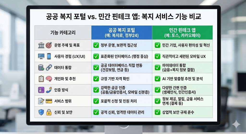 | 구분 | 복지로 (Bokjiro) | 토스 (Toss) |